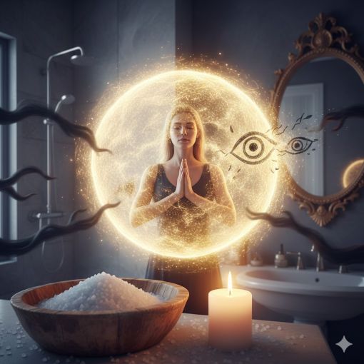 Hazırlık: Bir kase kaya tuzunu al ve üzerine "Benim alanım bana aittir, yabancı frekansları sevgiyle kaynağına iade ediyorum" diye niyet et.